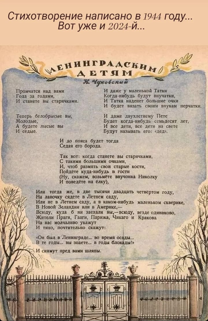«Сестра моя, товарищ, друг и брат, Ведь это мы, крещеные блокадой! Нас вместе называют Ленинград! И шар земной гордится Ленинградом! (О.Бергольц).